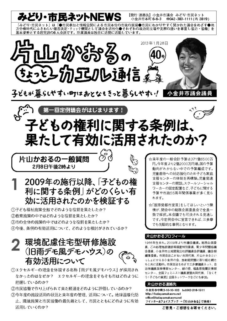 カエル通信 40号(2013年01月28日)if(SCF::get("catch")): ?> endif; ?>